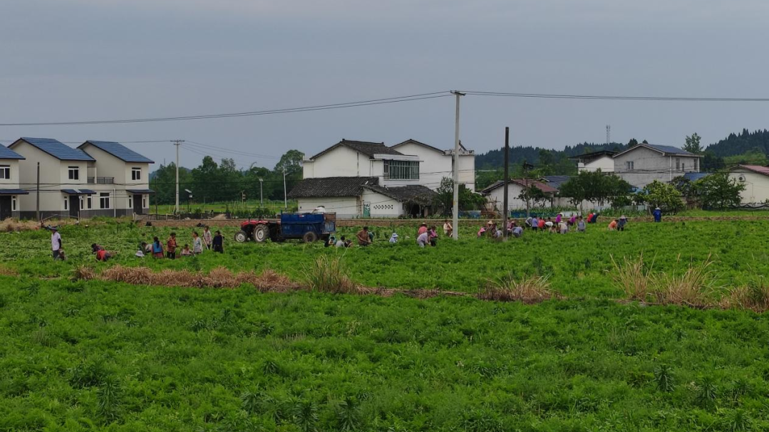 初夏时节,三家镇三门村的350亩川芎种植基地里,近百名村民正弯腰加紧采收川芎,随着一车车川芎装车启运,旋耕机已在收割完毕的田块里轰鸣作业——这片土地正上演“川芎+水稻”的轮作模式,亩均年收益突破万元。