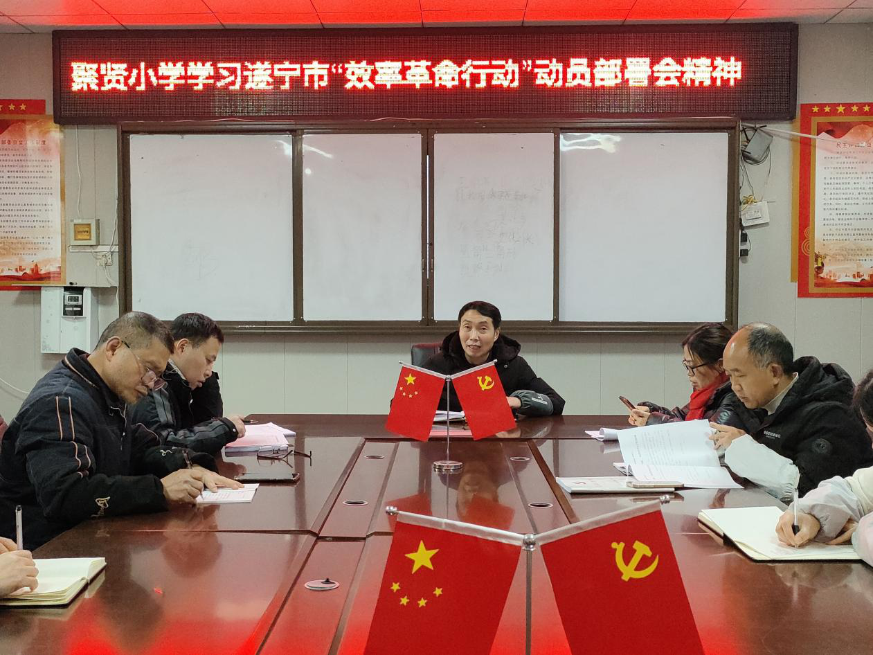 2月24日,安居区聚贤小学积极响应全市“效率革命行动”动员部署会精神,组织全体行政后勤人员召开专题学习会议。会议由校长刘中勇主持,全体行政后勤人员参与,深入学习了全市关于开展“效率革命行动”的决策部署。