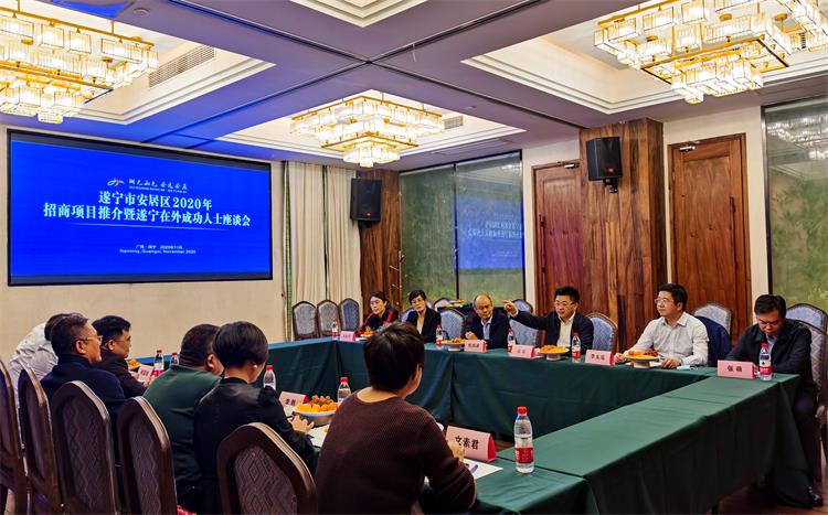 11月25日,区委副书记、区长吴军率队在广西南宁举行安居区2020年招商项目推介暨在外成功人士座谈会,与身在南宁的乡贤乡友畅叙乡情、共谋未来、共话发展。区委常委、常务副区长李戈亮主持会议。
