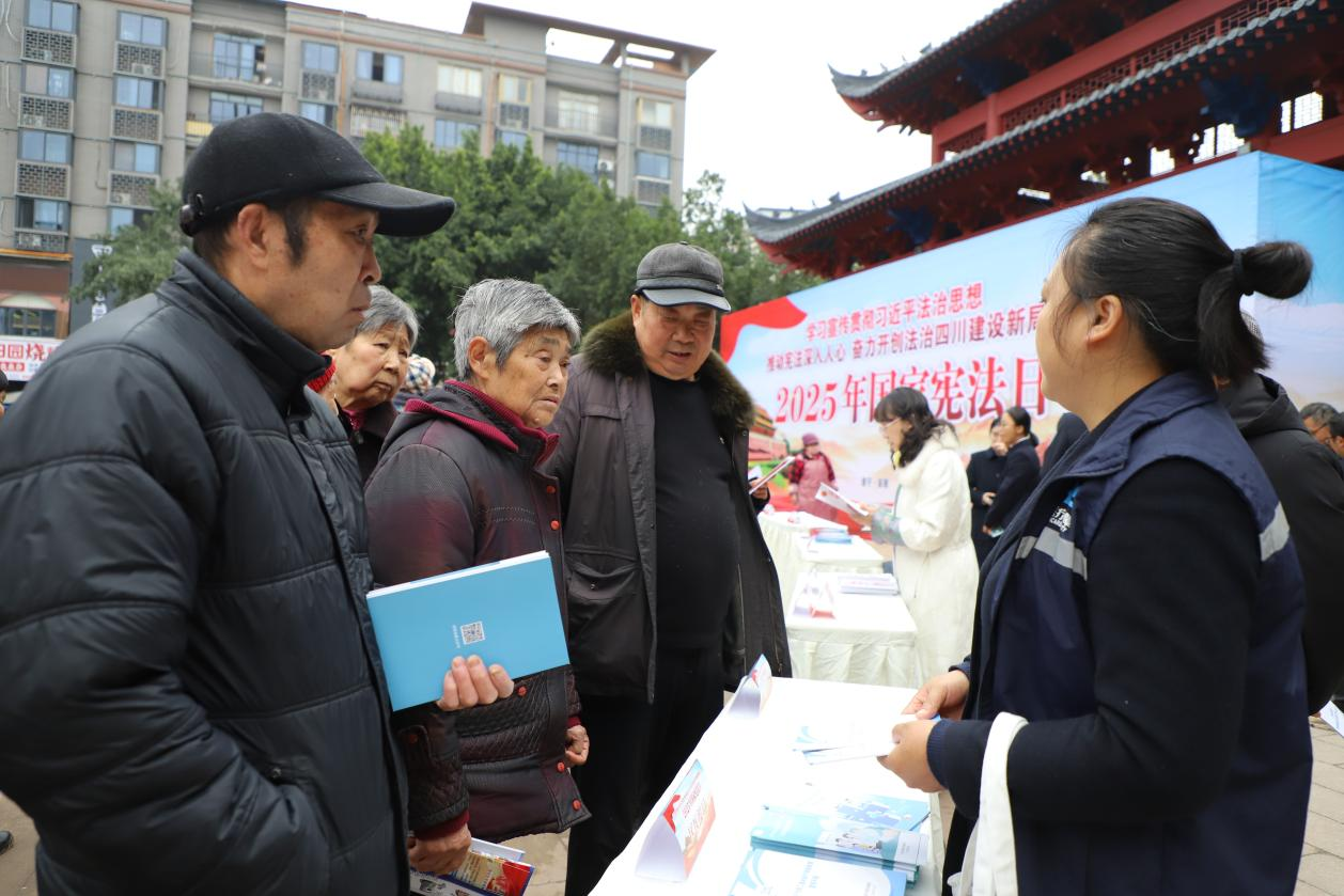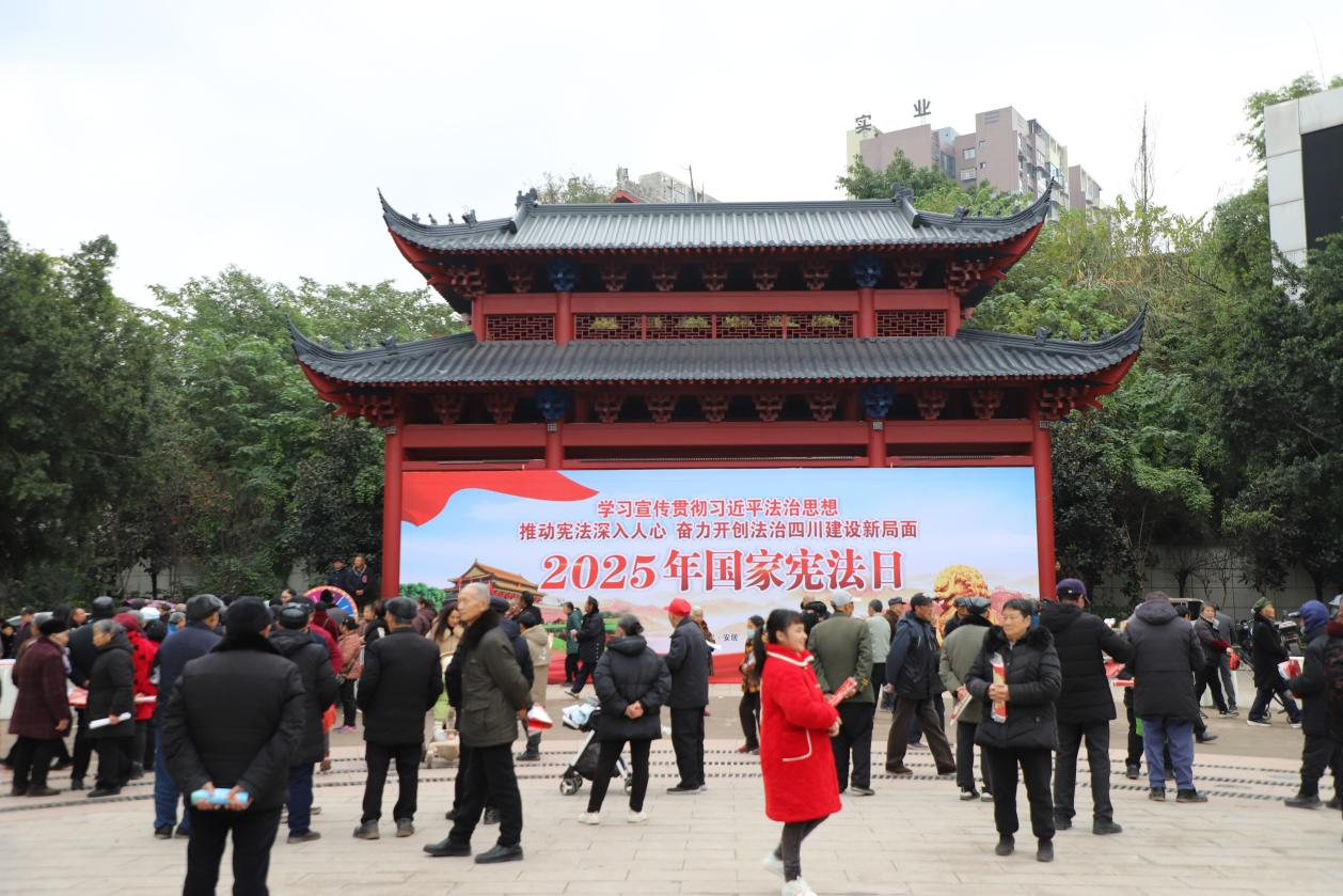 这是安居区开展“12·4”国家宪法日暨宪法宣传周集中宣传活动的现场一幕。今年12月4日,是第十二个国家宪法日。区司法局联合22个区级部门,开展“沉浸式”普法,让宪法知识走进千家万户。