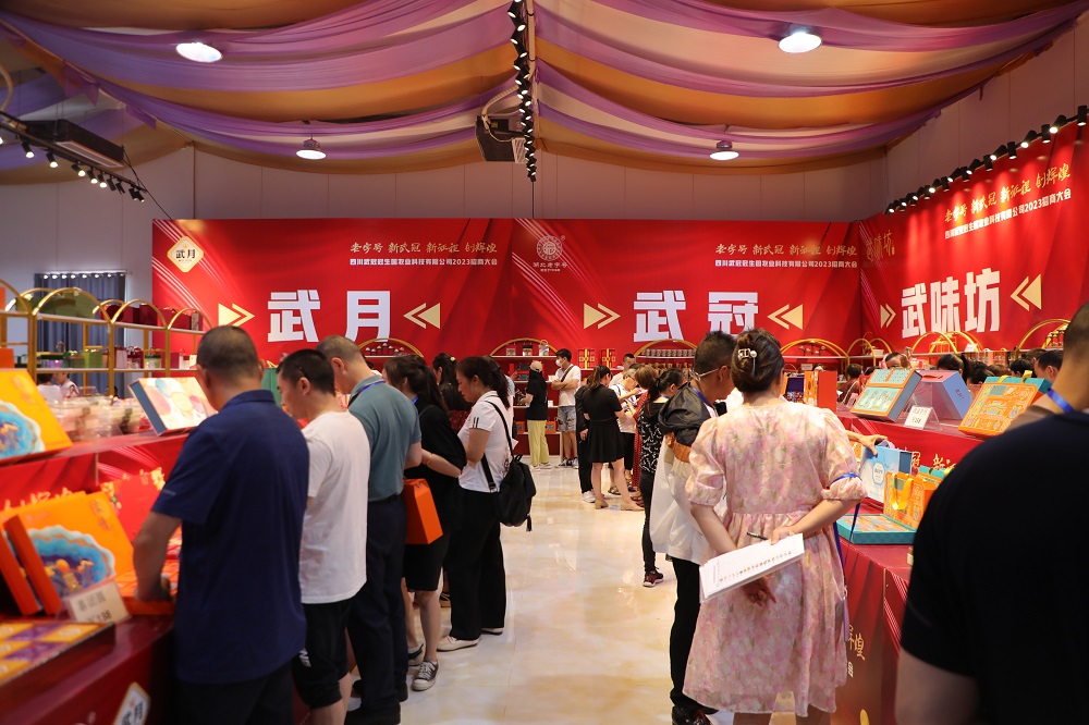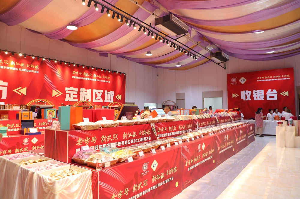 6月26日,四川武冠冠生园农业科技有限公司2023年招商大会在安居区保石镇举行,会议吸引了全国各地近500家经销商到场参加。此次招商大会集中展示了保石镇月饼产业发展的丰硕成果,其中,以《武月》《武味斋》《武味坊》等高端月饼品牌在大会上备受青睐,现场签约了一大批意向签约协议,签约总额超3000万元。