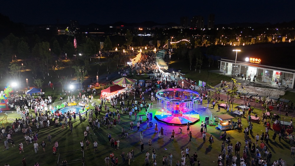 端午假期,“粽情盛夏·乐游安居”游园会上,川剧变脸、非遗火刀、铁水火龙、烟花瀑布等多项夜间演出轮番上演,将节日氛围推向高潮。