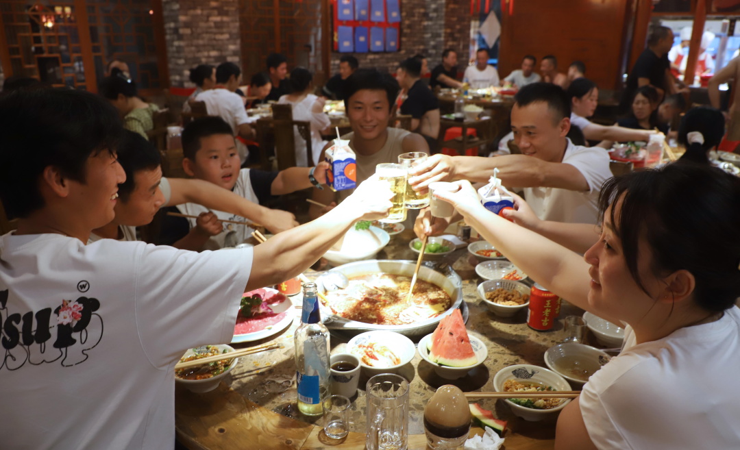滨江南、北路的餐饮店内座无虚席,沿江一带的其他娱乐场所同样人气高涨。“上半年夜间最高单日营业额突破了2万元,翻台率也做到了2次”,欢辣潮人鲜菜串串香店长李梅介绍,“尤其是周末晚上,很多熟客会选择提前预约。”