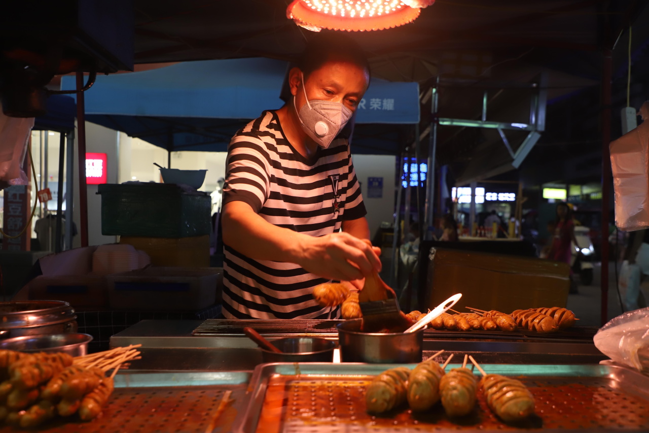 与此同时,安居大道上车流也在不断地涌入刘家坝等商业街区。“我们下午六点出摊,现在9点钟,已经赚了400元。”刘家坝夜市的烧烤摊老板王志均笑着说。