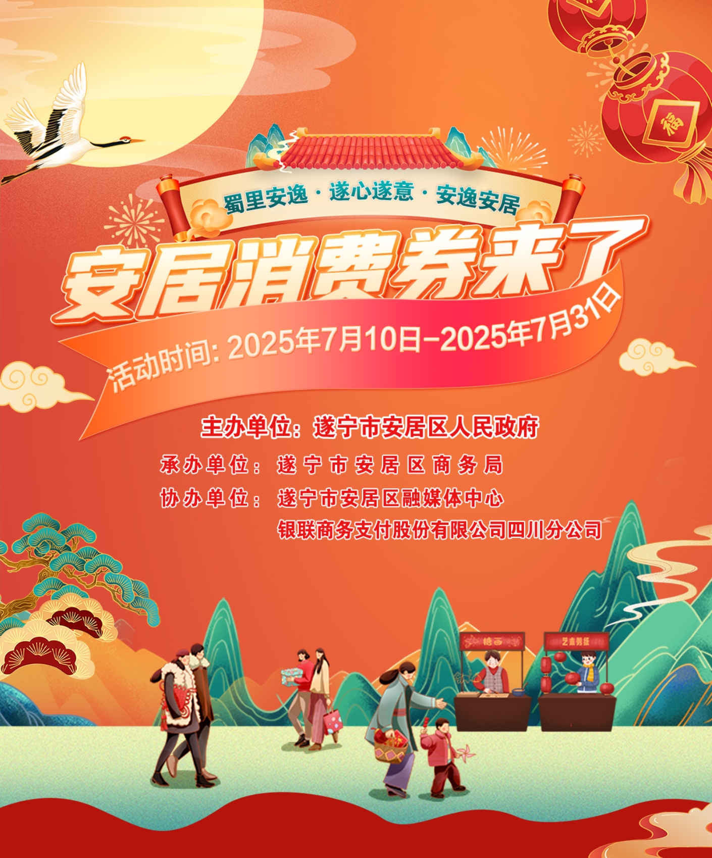 政策方面,4月17日至6月30日,安居区持续开展“蜀里安逸·遂心遂意·安逸安居”消费券发放活动,涵盖餐饮、住宿、零售三大消费领域,支持超过80家企业核销使用,有效激发消费热情。
