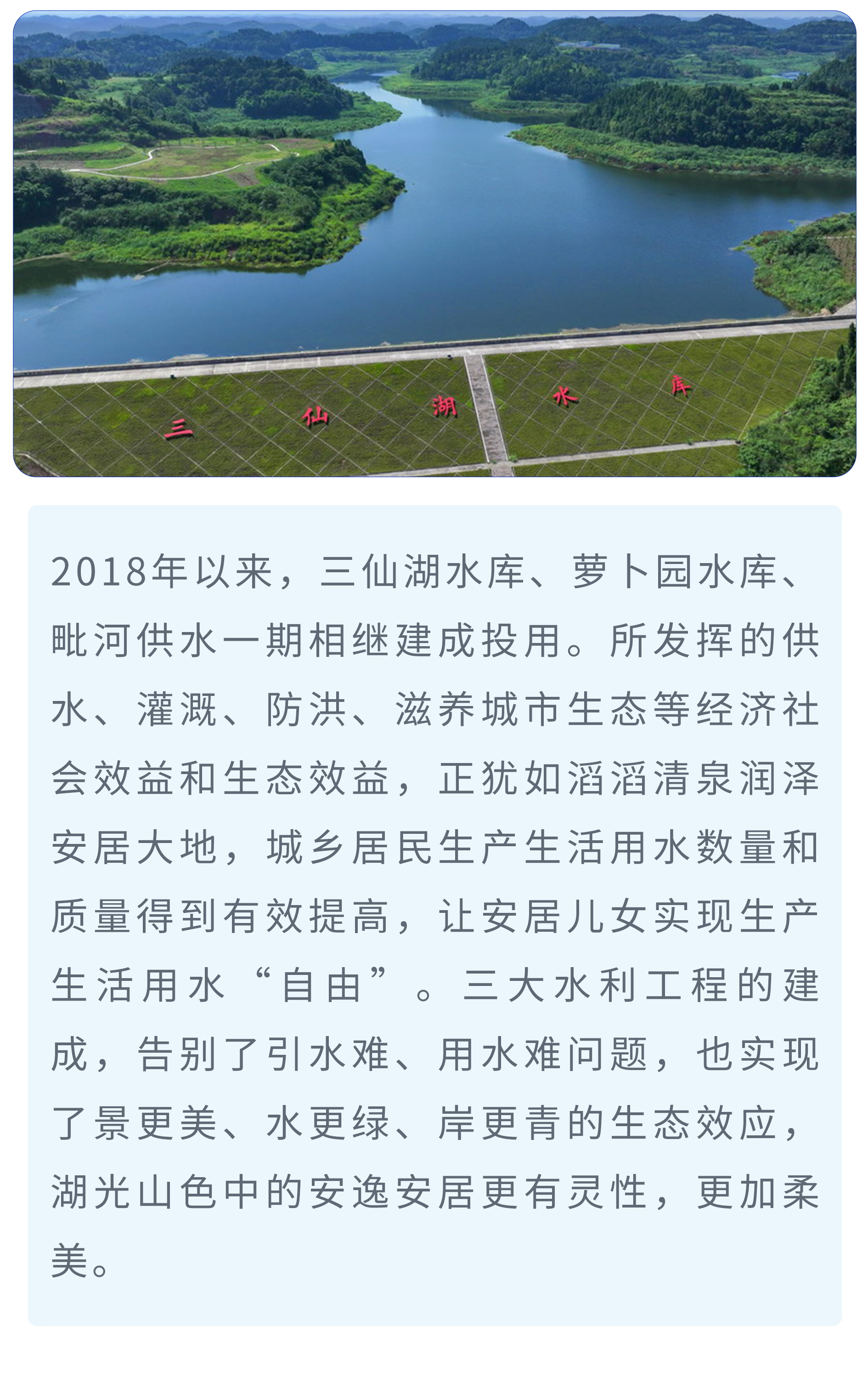 三大水利设施相继建成,安居人民生产生活用水有了充足保障。