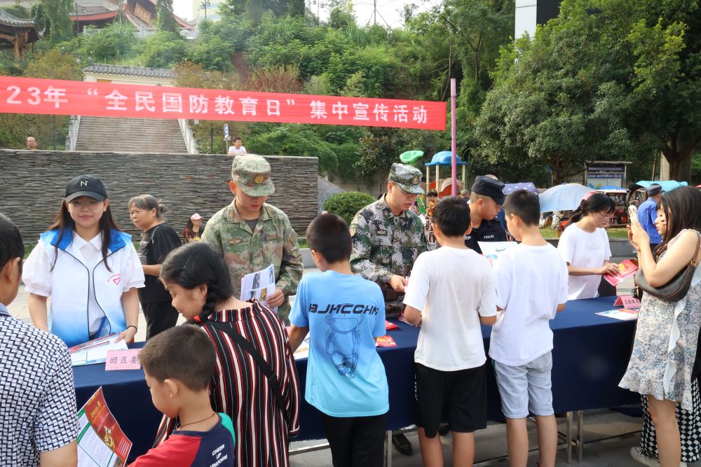 今年9月16日是第23个全民国防教育日。为扎实开展全民国防教育,9月16日当天,安居区委宣传部、区人武部、区国动办、区双拥办等相关部门在头陀寺广场开展以“踔厉奋发强国防 勇毅前行向复兴”为主题的全民国防教育日集中宣传活动。