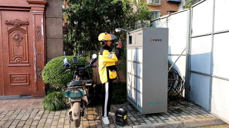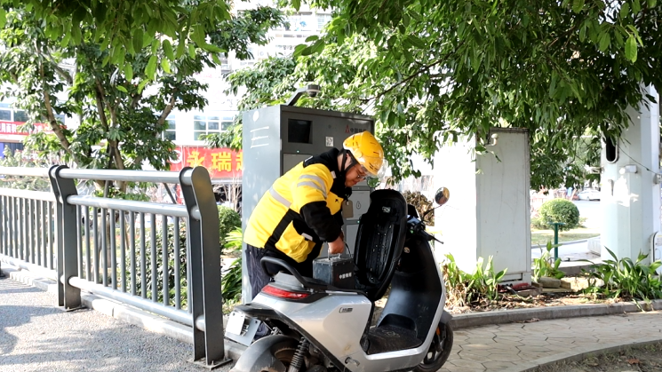 目前,全区共配备智能换电柜6个,投入智能锂电池200余组,能为100余名快递员和外卖骑手提供电动摩托车、电动自行车换电服务。