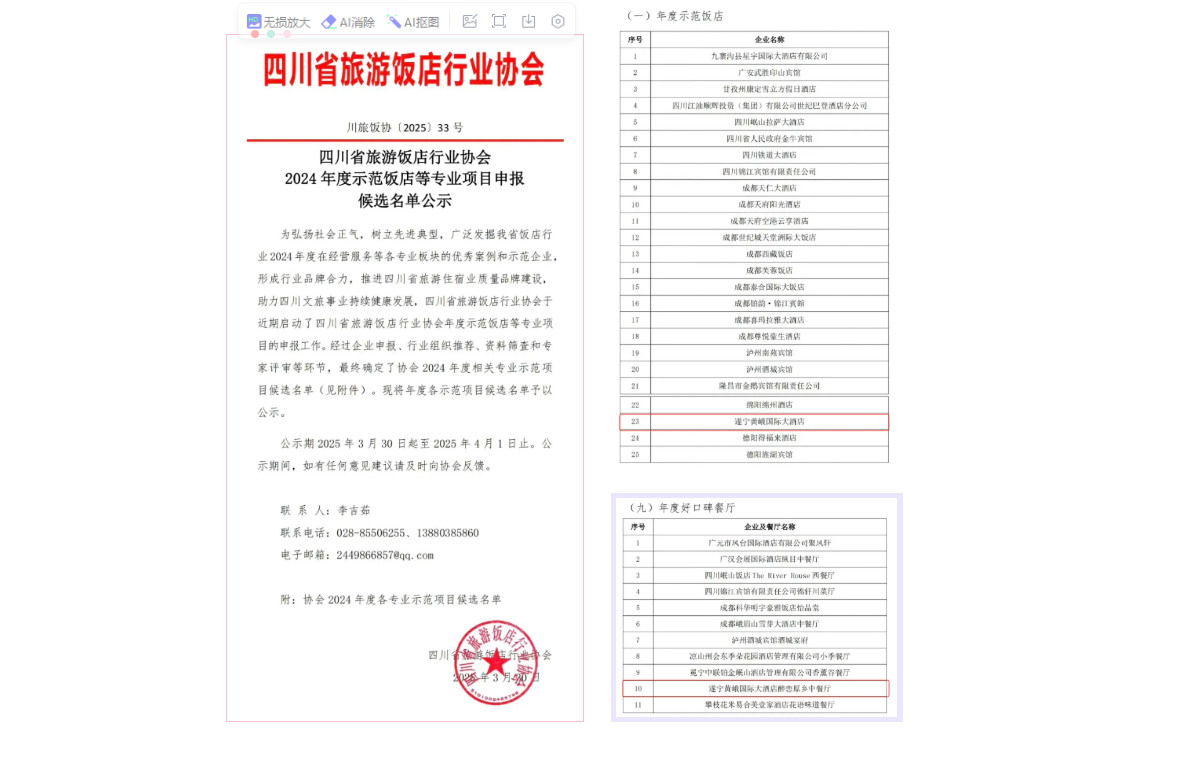 四川省旅游饭店协会经过层层评选
