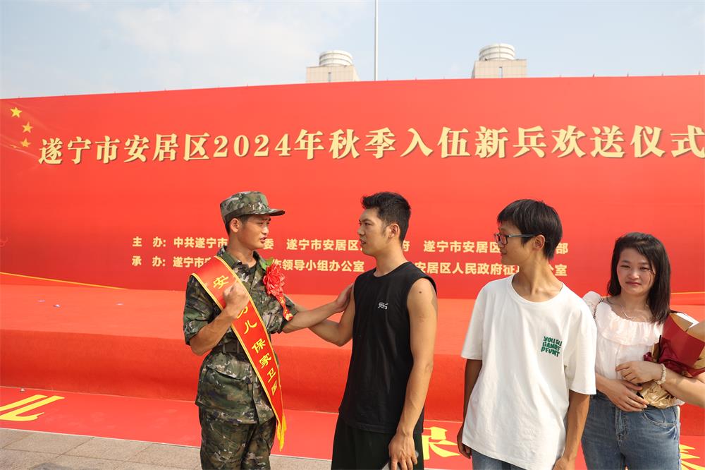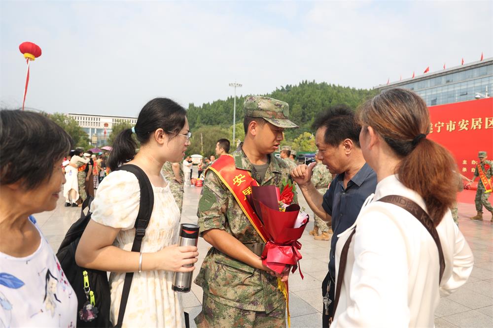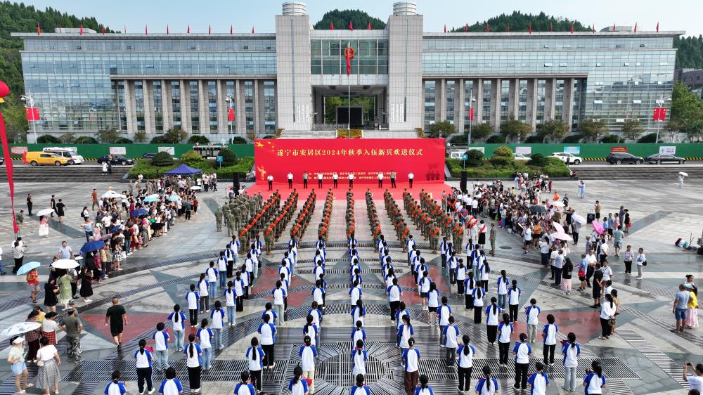9月19日,阳光明媚,安居区和谐广场上人头攒动,安居区2024年秋季入伍新兵欢送仪式暨“书记送我去当兵”活动在这里举行。新兵们带着家乡人民的祝福和期待,即将踏上报效祖国的幸福征程。