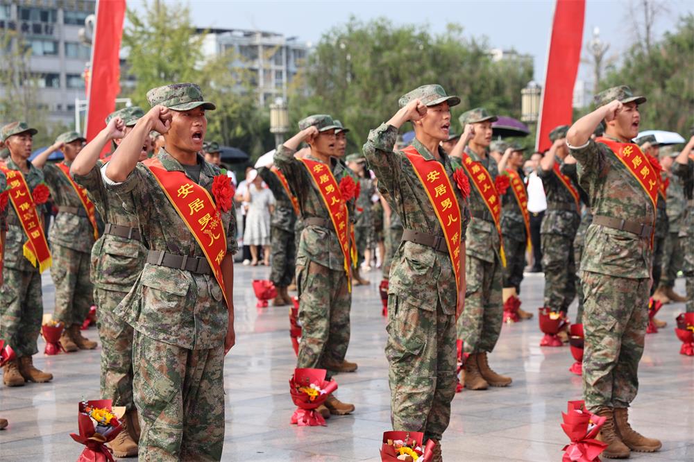 “我是中国人民解放军军人,我宣誓:服从中国共产党的领导,全心全意为人民服务……”仪式现场,应征入伍的新兵们身着戎装,胸配红花,肩披绶带,英姿飒爽。他们怀着参军报国的理想踊跃报名、积极应征,经过严格把关、层层筛选,最终脱颖而出,成为光荣的人民子弟兵。
