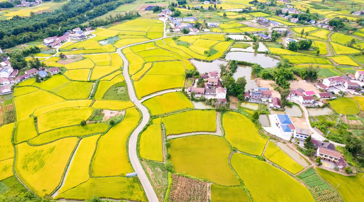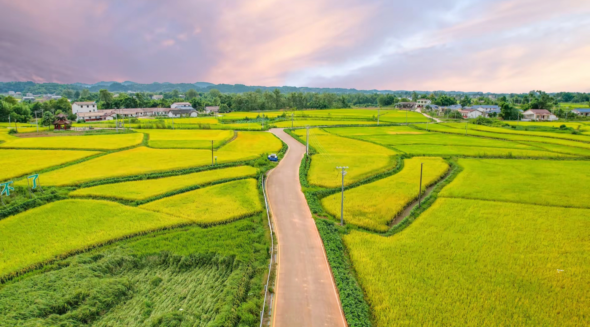 遂宁市安居区三家大米农业产业园田间地头遍地金黄