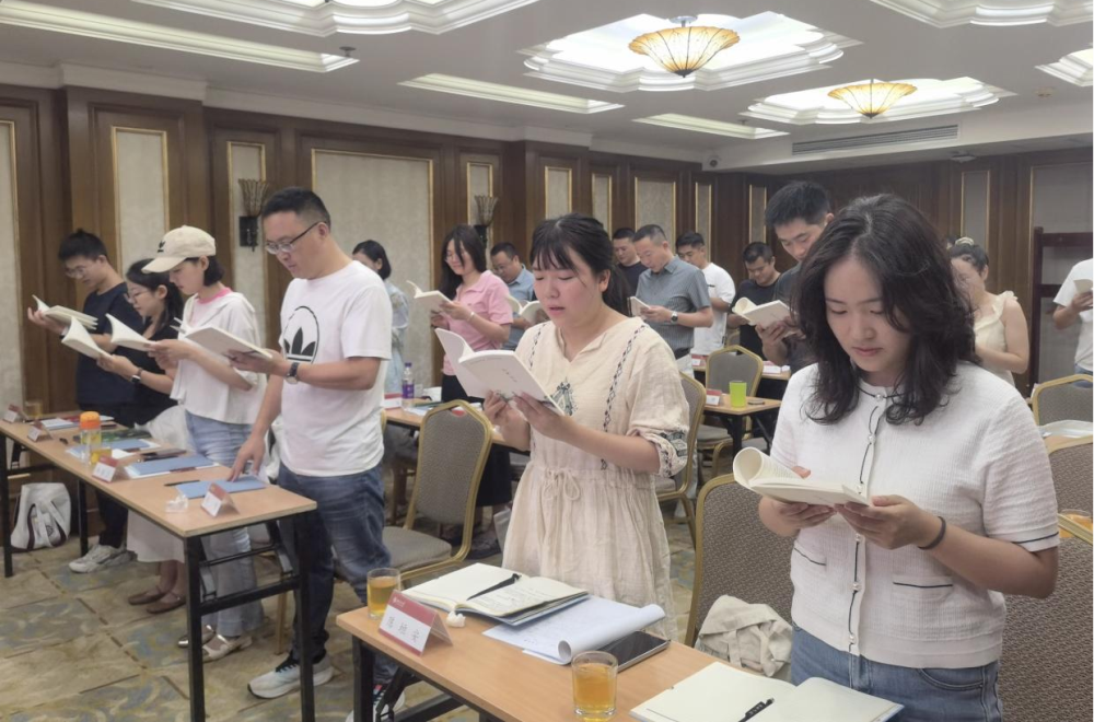 为进一步提升学员理论素养和党性修养,本次研修班坚持读原著、学原文、悟原理的学习要求,开展“一刻钟”晨读学习活动。通过轮流领学、全员跟学的形式,诵读《中国共产党简史》《党旗颂》等红色经典和习近平总书记近期重要讲话、重要论述,使学员们“晨有所读、学有所思”,在润物细无声中感悟红色精神,传承初心使命,提升思想觉悟,强化学习效果。