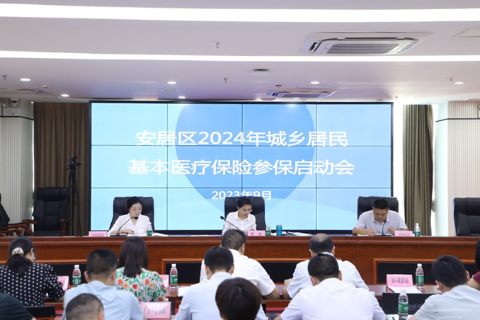 9月15日,安居区举行2024年城乡居民基本医疗保险参保启动会,进一步维护广大人民群众的医疗保障合法权益,营造自愿参保、积极参保的良好社会氛围。副区长张玲参加会议。