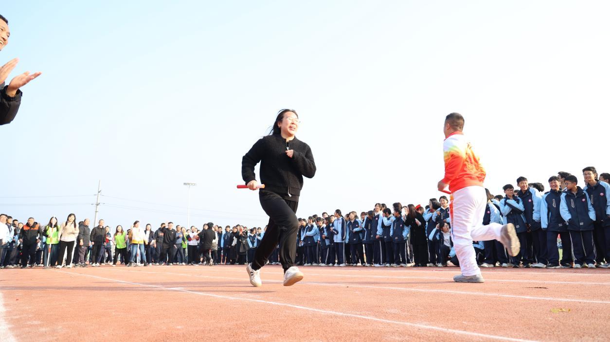 教师趣味项目将现场气氛推向高潮。“迎面接力”“踩高跷”“赶小猪”等比赛妙趣横生,引得现场欢笑不断,师生同乐,气氛热烈——原来讲台上严肃的老师们,运动起来也这么“有梗”!