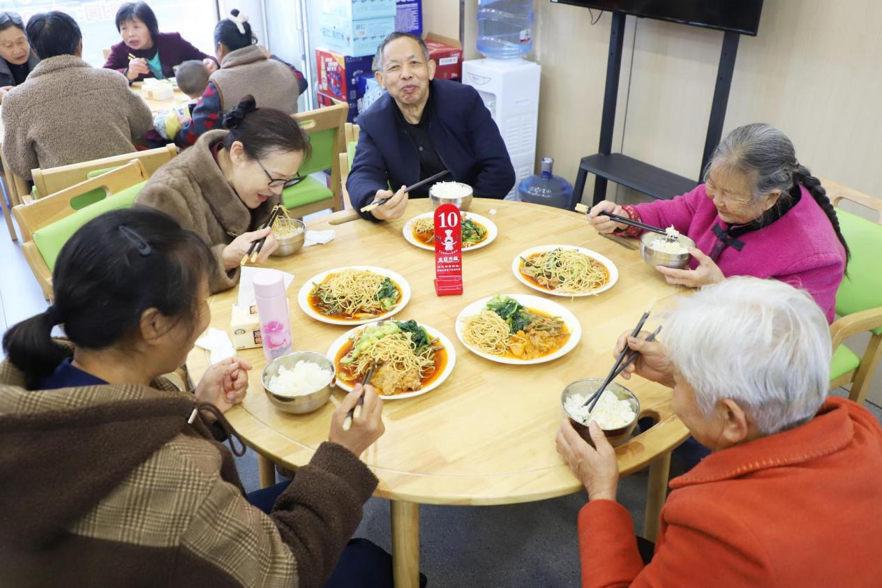 每到午间,安居区永正幸福膳食坊便饭菜飘香、热气腾腾。老人们陆续前来,围坐一桌吃饭聊天,小小的食堂里洋溢着幸福的味道。