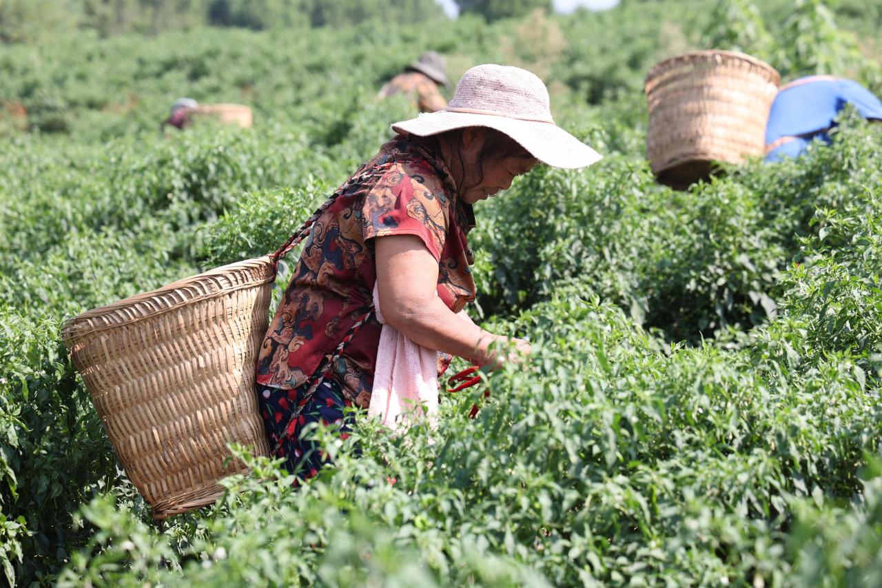 风吹热浪丰收景,乡村田野遍地忙。时下,正是辣椒成熟上市的好时节。在中兴镇五香庙村,翠绿的辣椒田在阳光的照耀下显得格外生机勃勃,火红的辣椒如同点点繁星点缀其间。