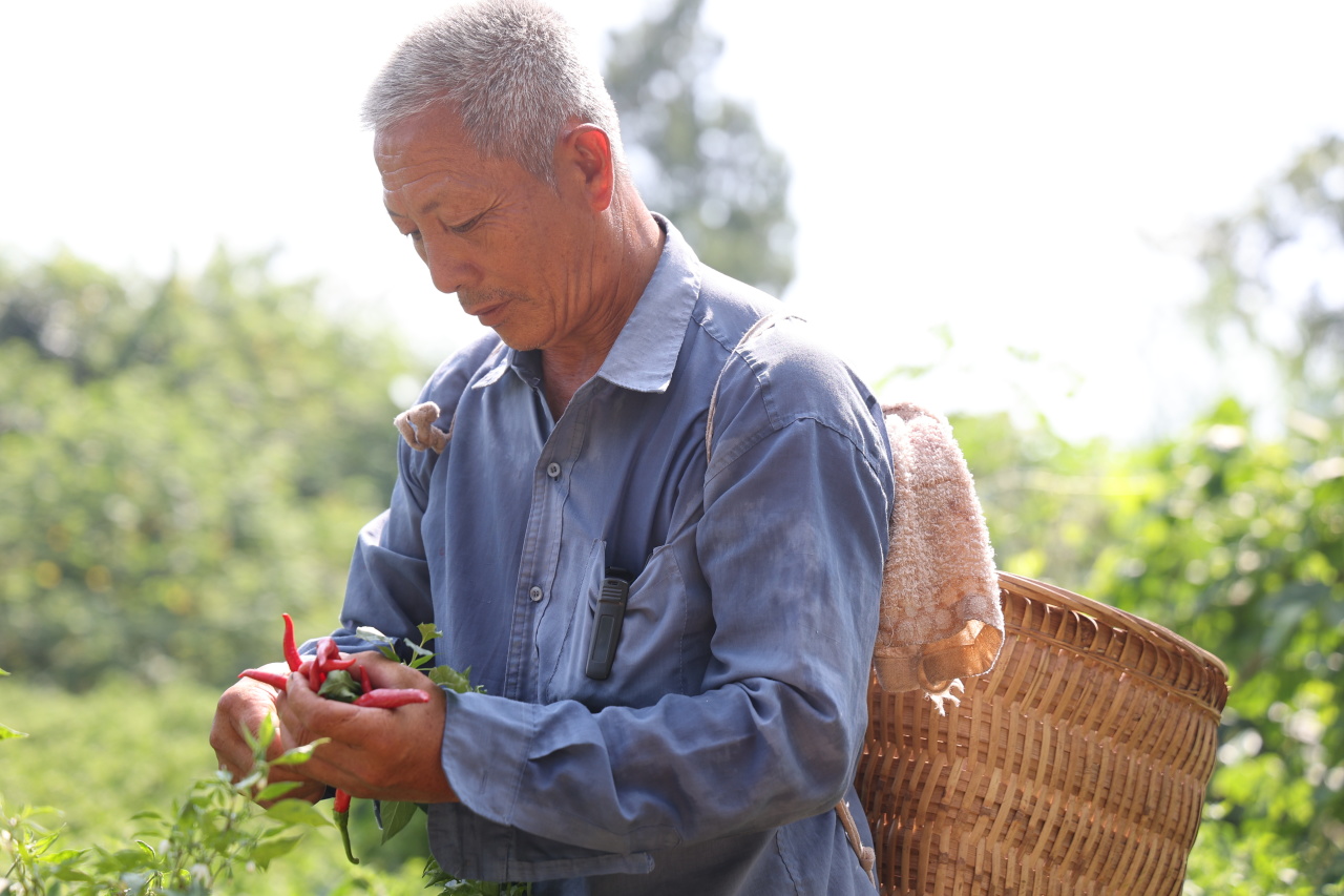 “摘好的辣椒,统一放到车里……”一大早,基地的工人们便拿着背篓来到地里采收辣椒,火红的辣椒被工人娴熟地从枝头摘下,并统一收放在车里,再转运到村里的烘干房里进行烘干。