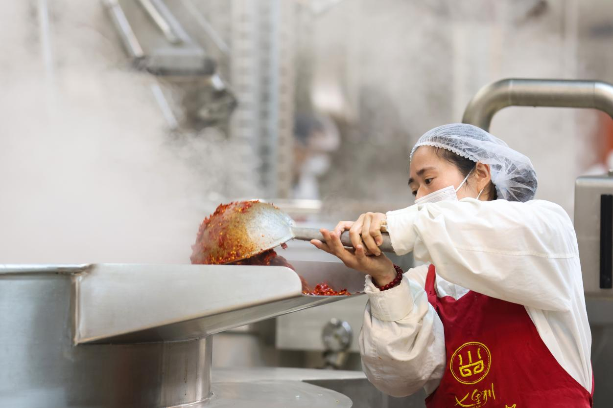 连日来,在四川川味里食品有限公司的新厂区内,工人正在炒料车间抓紧赶制订单,空气中弥漫着浓郁的椒麻香气。目前,该公司已顺利完成产线搬迁,新生产线运行平稳,日均可生产火锅底料10吨,今年将冲刺7000万元产值目标。