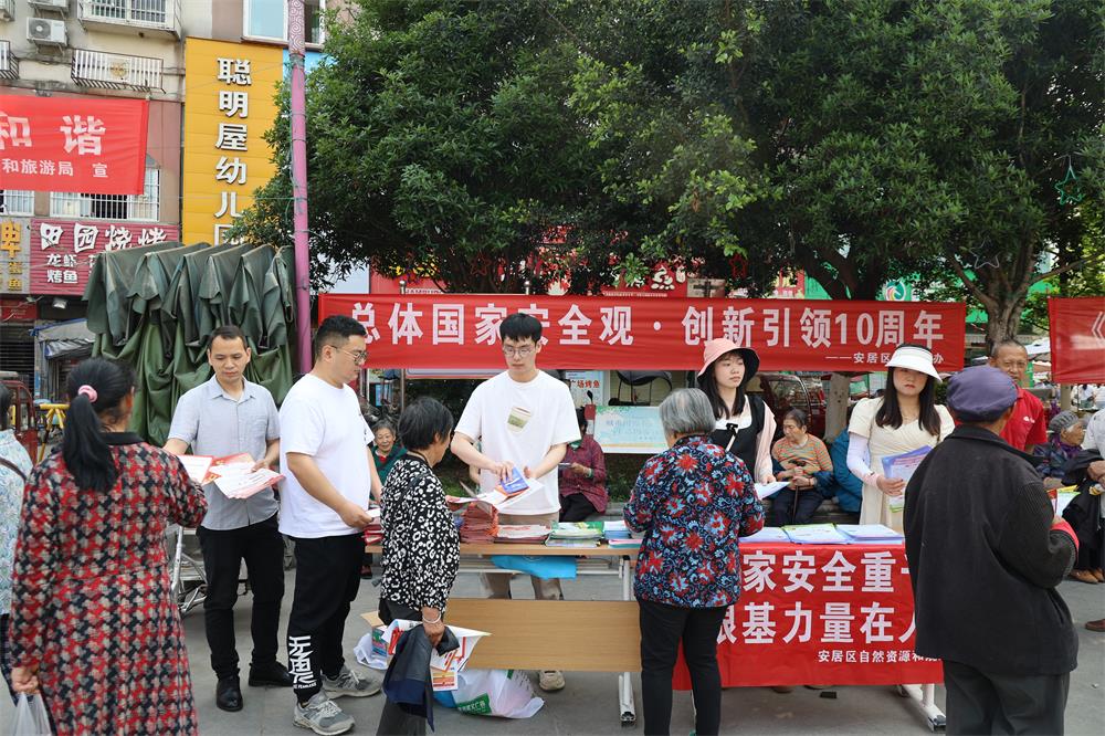 为进一步提升全民国家安全意识,营造维护国家安全的浓厚氛围,4月15日,安居区组织开展“总体国家安全观·创新引领10周年”主题宣传教育活动。