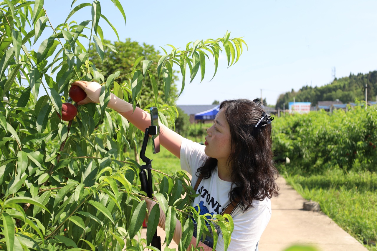 “今年我们建成了气象站对桃树周围的温度和湿度进行监控,能够在手机上远程控制进行灌溉,投入使用虫情测报仪、全自动孢子捕捉分析仪,全天化、全区域进行病虫害监测,并根据监测结果,进行科学化、精准化防治。”邱何鹏告诉记者,除了设备投入,进入采摘季,现在每天在基地务工的村民也有80余人。