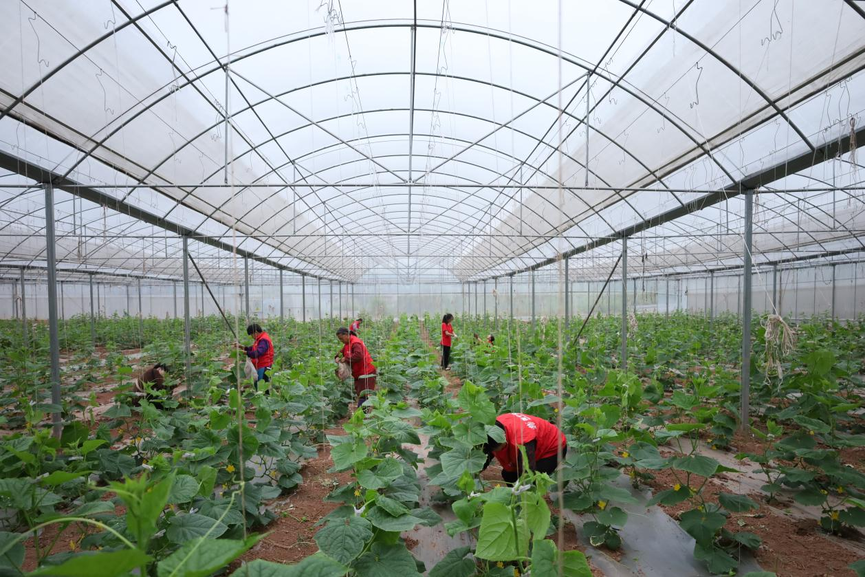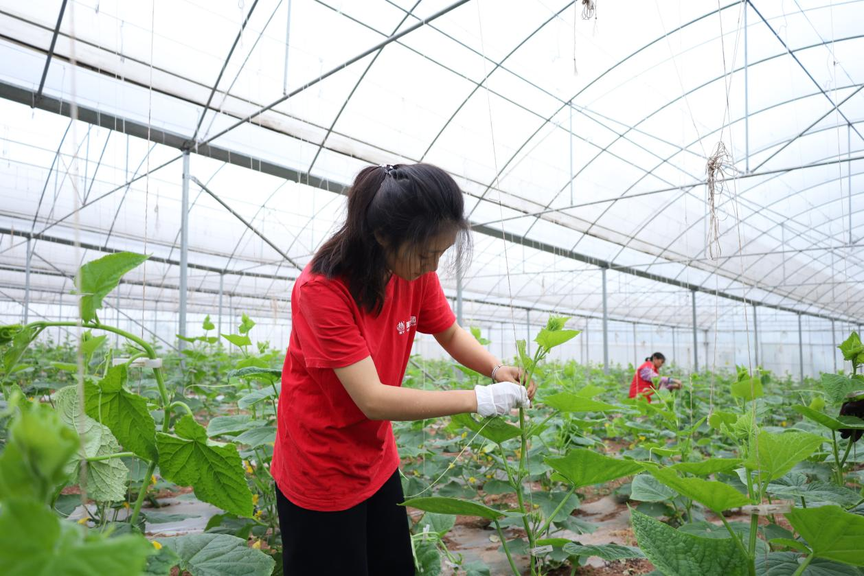 “最近气温适宜,雨水也比较多,我们正在进行黄瓜抹芽、梳芽,减少营养流失,这样结出的瓜品质好、个头大。”基地技术员崔文秀介绍。