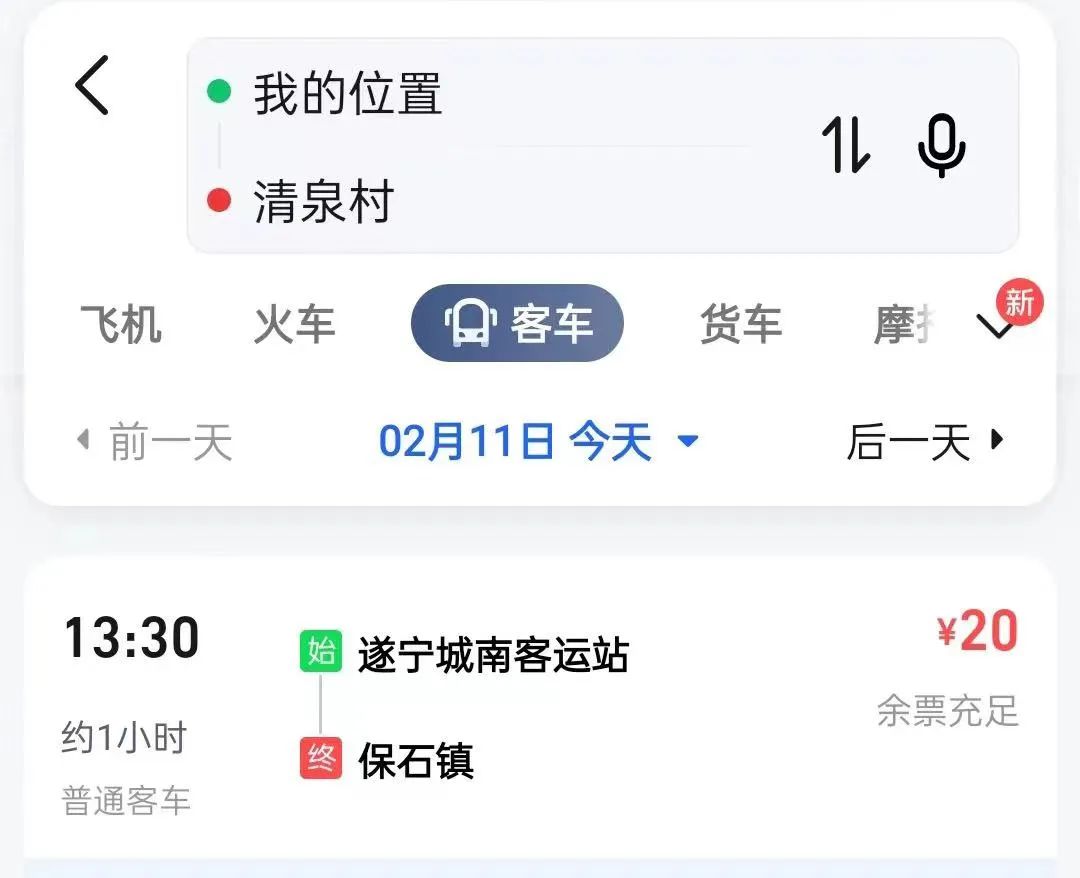 乘坐4路、5路、6路、16路、19路、508路公交车→遂宁城南客运站→保石镇→清泉村
