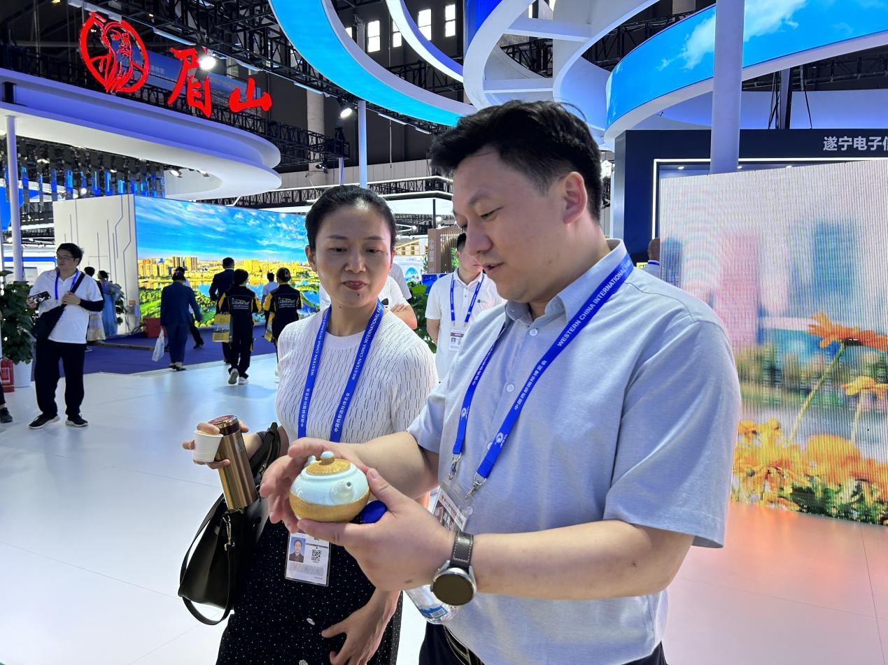 据了解,本次西博会是遂宁竹编第8次参展,展品也从平面竹编工艺画变成了美观与实用兼顾的瓷胎竹编茶具。“我觉得非遗要走进日常生活里才能更好传承下去,”赵恒开心地展示着他的得意之作,“我也希望通过西博会这个平台能够把遂宁竹编这项非遗技艺推广出去,和更多地区的美术工艺品交流学习,共同进步。”