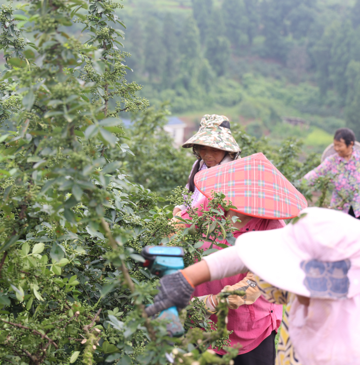 “今年的气候更好一些,加上管护技术进一步提高,对比去年亩产量增加了15%左右,今年1100亩花椒地,总产量预计达150吨。”提起今年收成,高滩坝村乡村振兴专职副书记舒应龙信心满满。