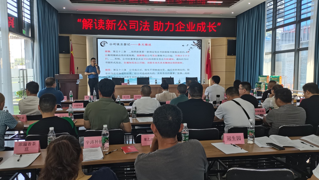 此次讲座围绕新《中华人民共和国公司法》重大修订的多项内容,对公司管理的基本概念、公司法总则重要原则、公司类型及不同规范等方面进行详细解读。同时特邀重庆大中会计师事务所谢正国老师对设立登记、股东权益、股权架构、股权转让等问题以案例分析的方式进行了深入浅出的讲解。返乡创业企业家代表们纷纷表示此次培训很有意义,为企业进一步理解公司法奠定了坚实基础。