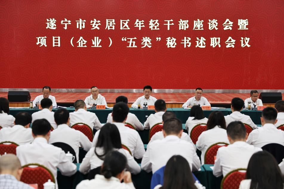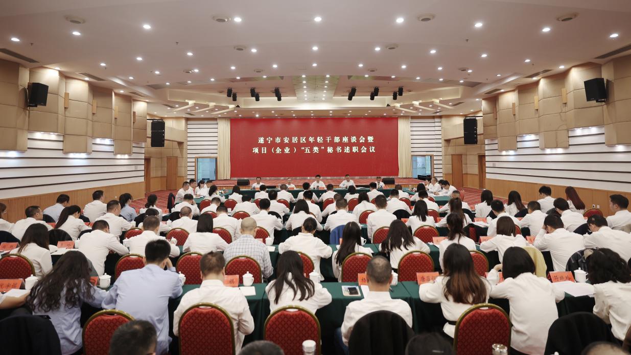 砥砺奋斗,青春正当时——10月10日上午,遂宁市安居区年轻干部座谈会暨项目(企业)“五类”秘书述职会议在柔刚会务中心多功能会议室举行。