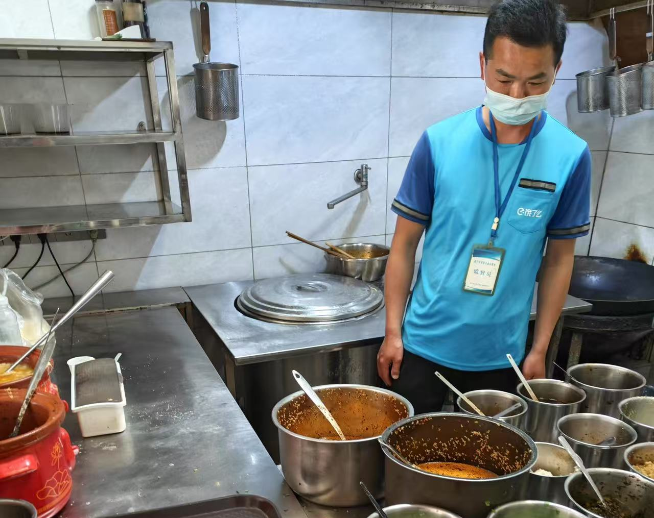 外卖小哥赵建军查看后厨卫生环境