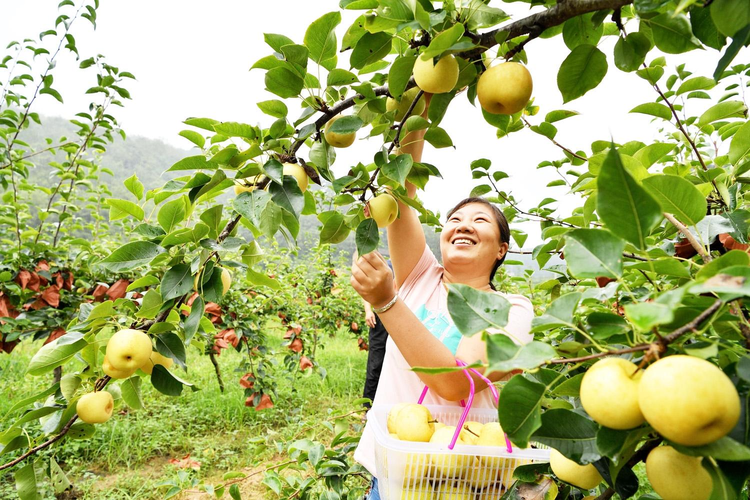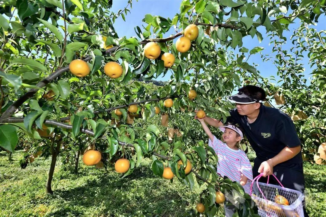 在海龙凯歌景区,有一个绿色黄金梨家庭农场,如今100余亩的黄金梨挂满枝头,散发着诱人的香气。