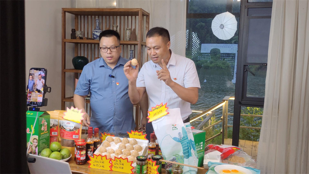 “我手里拿的正是安居特产坛子肉,还有农村的土鸡土鸭和土鸡蛋,物美价廉,需要的家人们可以直接下单哟。”7月17日傍晚,东禅镇马家桥村明月寨的电商基地迎来首场直播。