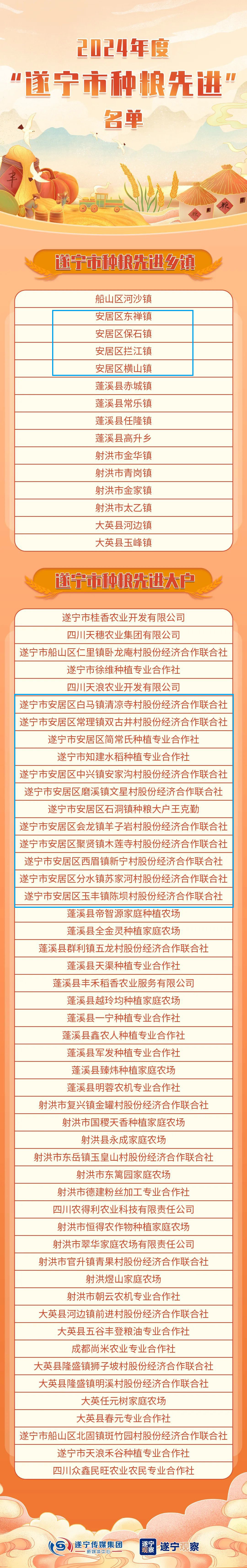 2024年度“遂宁市种粮先进”名单出炉,安居上榜的有——