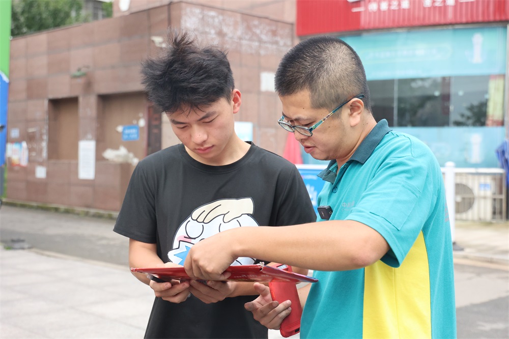 “同学你好,我是邮政的投递员,你的录取通知书到了,请带好身份证,我马上送过来。”7月11日上午,在凤凰街道碧云南溪小区,邮政安居分公司的投递员核验完身份后,将一封高考录取通知书送到杨晨同学手中。