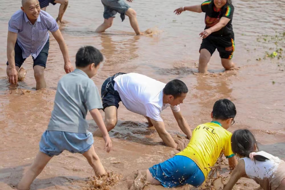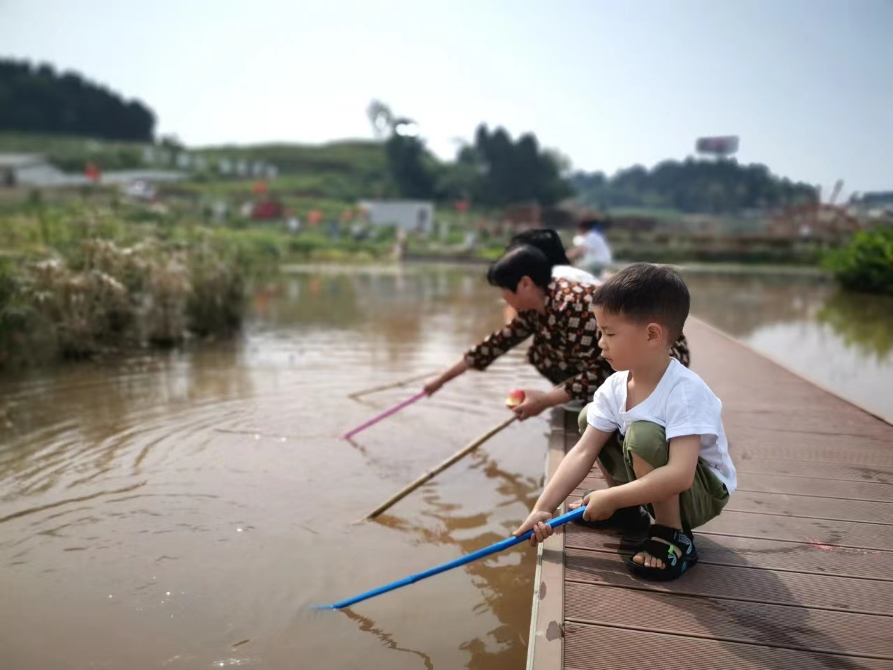 活动内容:五一假期在第三组团打造“浑水摸鱼”场地,按照每日三场定时定量组织开展抓鱼活动,所得鱼获可带走或加工