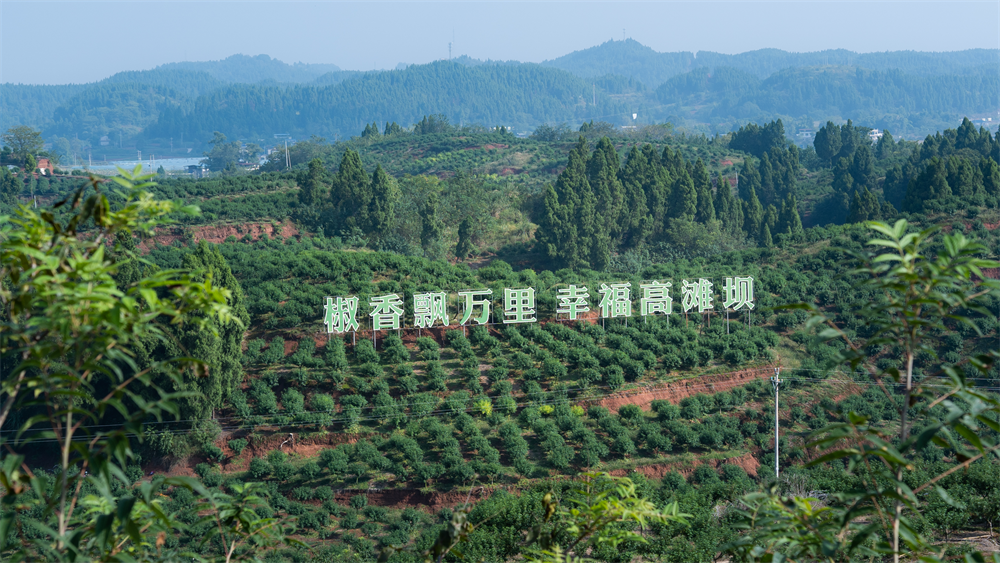 在高滩坝村近千亩青花椒基地,上万株青花椒树在其间整齐排列,一片片椒叶迎风展绿,数十名村民正在对青花椒进行秋管工作,为来年提高青花椒品质打下基础。