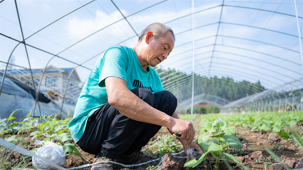 由于无筋豆的藤蔓比较软,长得又长,因此给无筋豆牵绳做支撑,就成了当务之急。“藤蔓会顺着绳子向空间伸展,这样就减少了叶与叶之间的遮挡,既通风又透光,减轻了病害发生。”高滩坝村股份经济合作联合社成员赖忠义介绍。