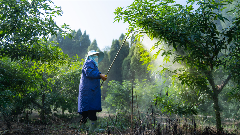 “每年,青花椒基地从9月开启秋季管护工作一直持续到11月,主要包括除草、树形管理、修枝、喷洒农药等。”四川好女婿花椒种植专业合作社管理员王兴志介绍。