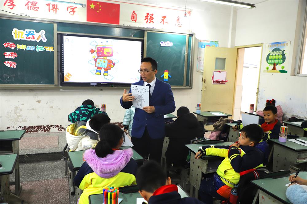 磨溪小学由于地理位置较远,存在教师结构性缺编现象,没有专业美术教师,给孩子们学习美术专业知识、学校开展美术教育带来了困难。2023年秋季学期,安居一小的美术老师金红海被安排到磨溪小学任教美术学科。金红海告诉记者,其实开始的时候,他心里还是有些犹豫的,毕竟路途较远,不太方便,但想到自己原来也曾经在农村小学工作过,乡村的孩子非常渴望上好美术课,但又没有专业的美术老师,最后他欣然决定到磨溪小学去走教,助力孩子们全面发展。