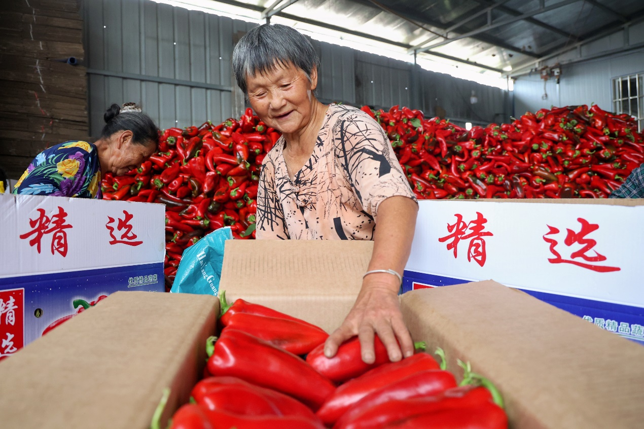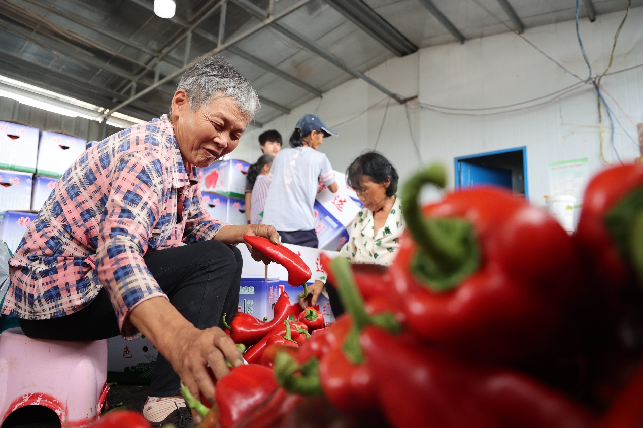 眼下正是甜椒成熟的时节,连日来,在石洞镇杨家坝村130亩甜椒种植基地,牛角形状的甜椒生机盎然,种植户组织村民们忙着采摘、打包、装车,准备发往成都、宜宾等地。
