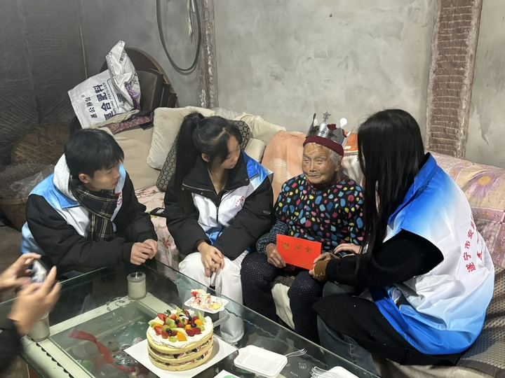 志愿者为石洞镇双祠堂村百岁老人庆祝生日