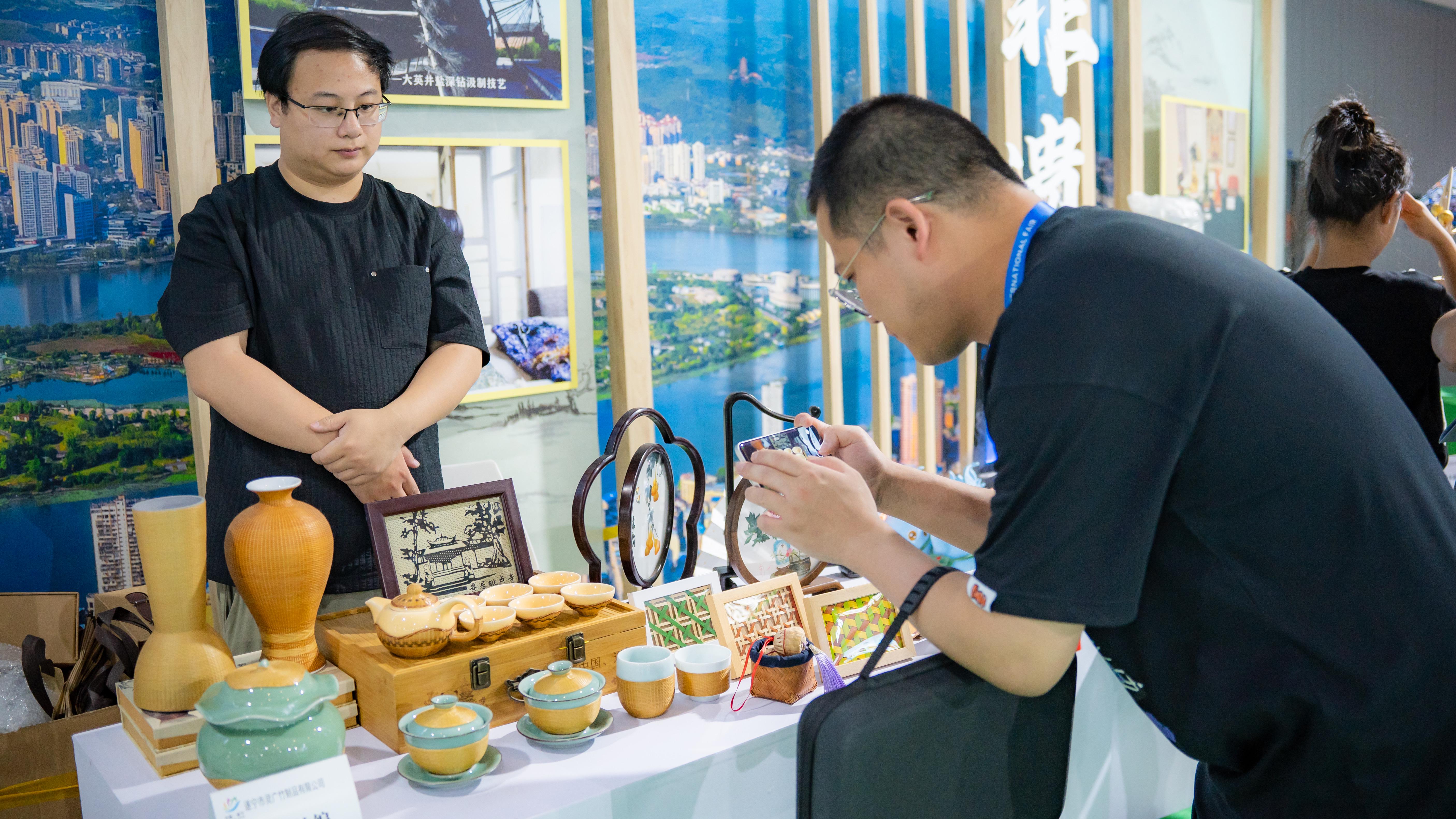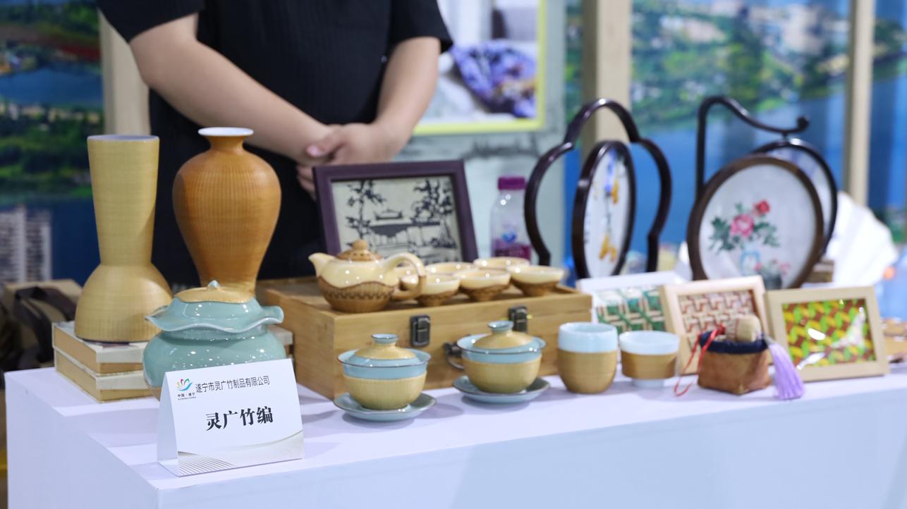 展馆另一侧,安居区的文旅融合成果与绿色农业魅力交相辉映。观音绣以针线勾勒禅意文化,灵广竹编展现传统技艺的现代新生,四川凯歌农旅发展有限公司的文创产品则将安居的田园风光与知青文化巧妙融合,成为文旅IP创新的生动注脚。