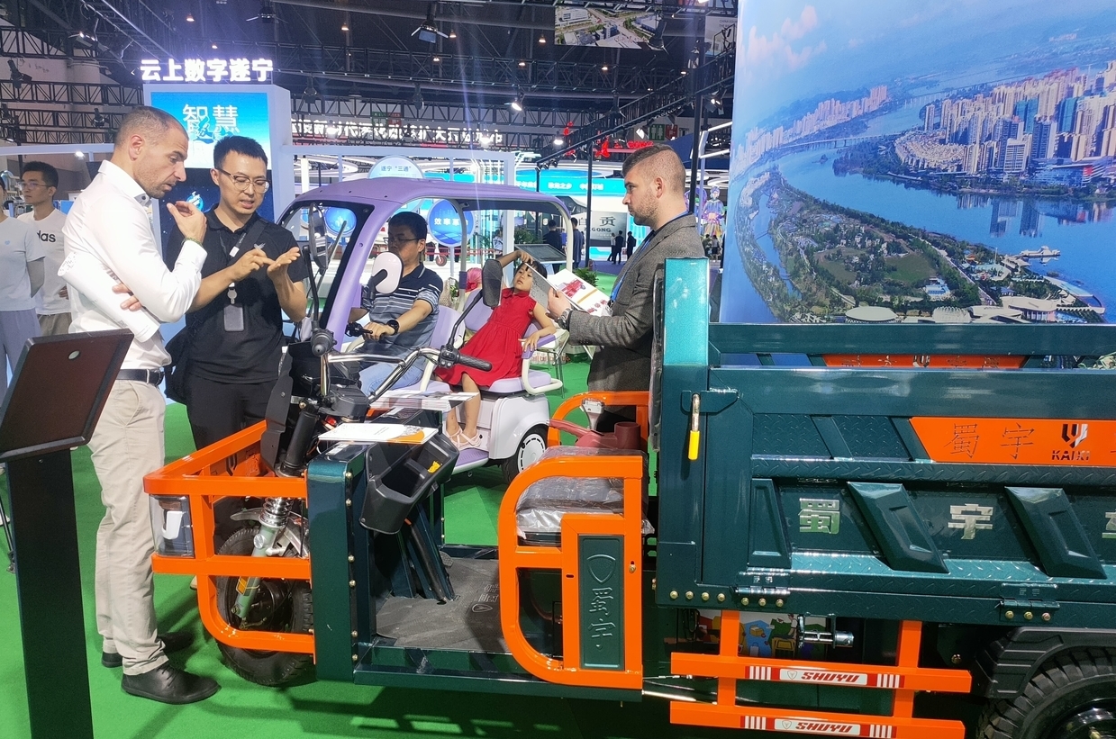 “作为首次参展企业,我们带来两款电动三轮车代表作,希望通过西博会向全球客商展示‘中国智造’的高水准,让蜀宇品牌走向国际市场。”蜀宇集团国际贸易部主管文予欢表示。