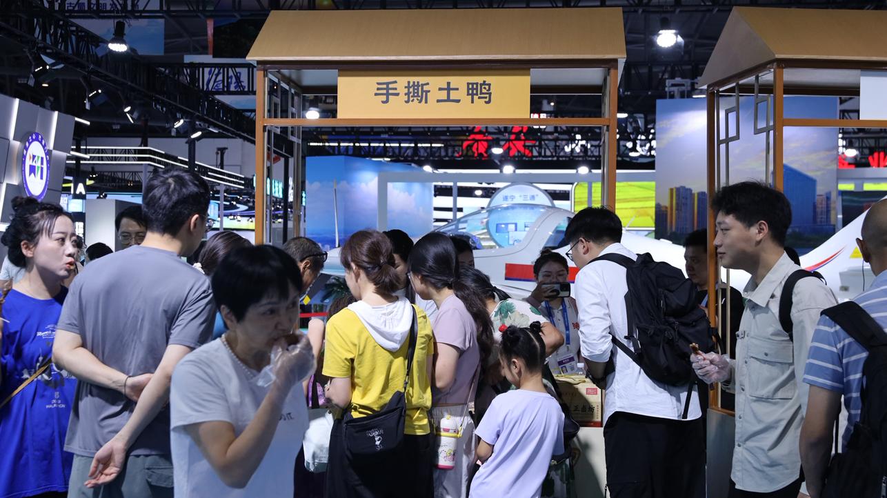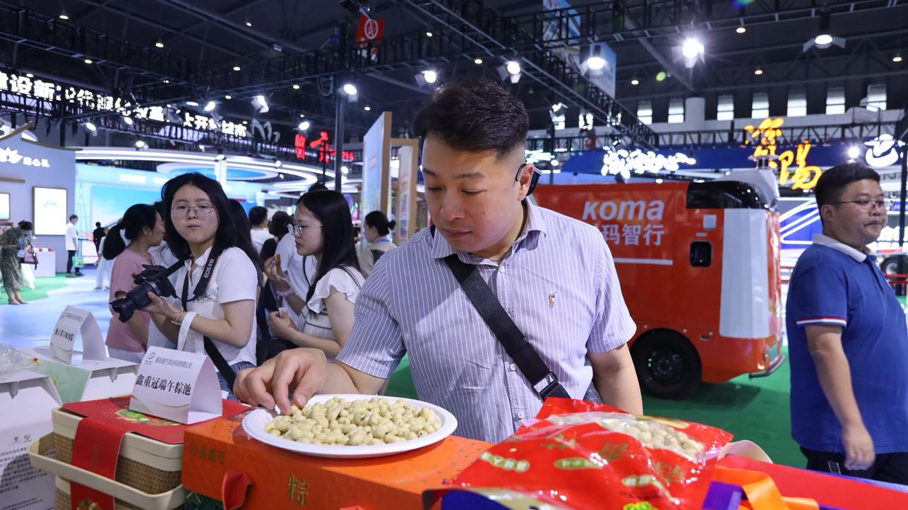 美食展区更是人气爆棚:绝味鸭脖、永正手撕鸭的鲜香引得食客驻足试吃,遂安逸花生的酥脆、老龙塘酒的醇厚、状元蹄的软糯令人回味无穷,遂宁市永荣科技农业有限公司的三家大米则以“从田间到餐桌” 的全链条品质管理,诠释着安居绿色农业的匠心。“花生香酥可口,非遗手工艺品更是透着文化底蕴,让人忍不住想亲自去安居走一走。” 参展观众王小军的感慨,道出了众多参观者的心声。