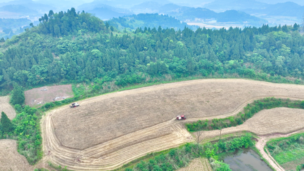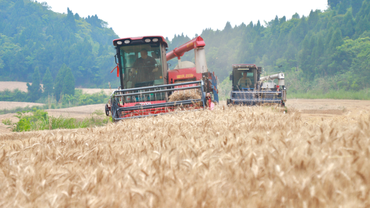 “今年我们在石山村流转了1300多亩土地,主要从事小麦和高粱的轮作。”遂宁市金粮源智慧农业科技有限公司总经理颜超介绍,小麦从5月初就开始收割,每天多台大型收割机抢抓晴天奔忙作业,收割后直接转运至公司建成的农事服务中心进行烘干、筛选一体化初加工,然后销往宜宾、泸县等西南地区各大酒厂。依托全程机械化优势,实现了小麦收、烘、销一体,确保颗粒归仓。