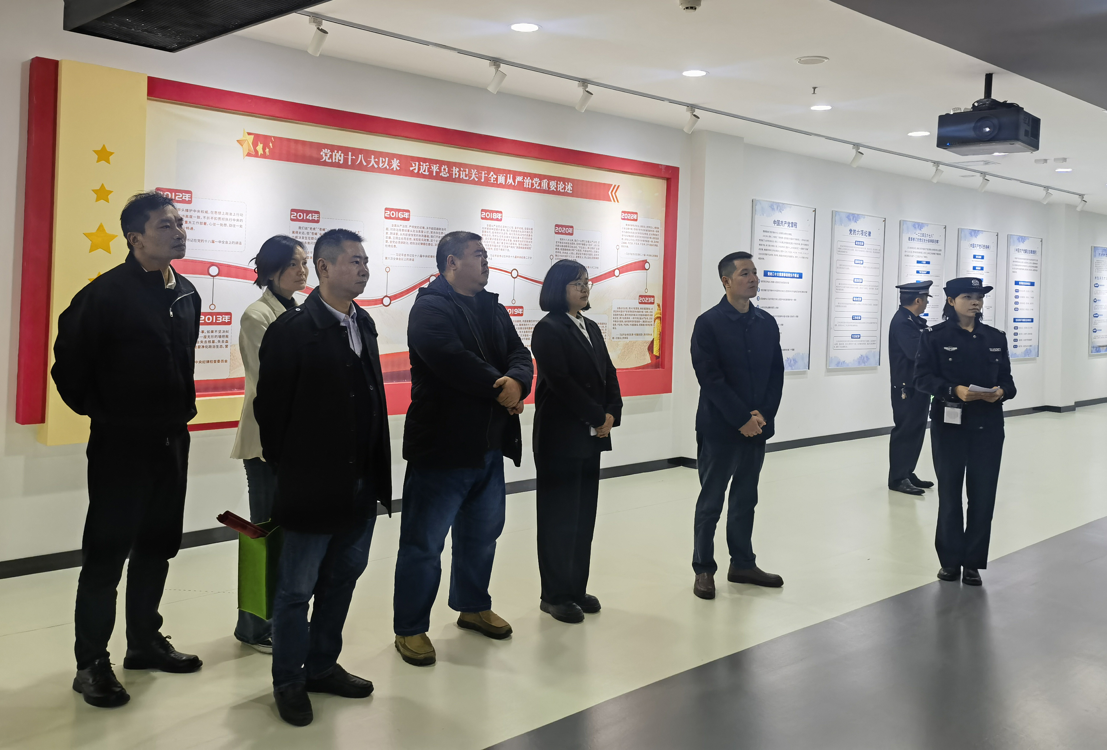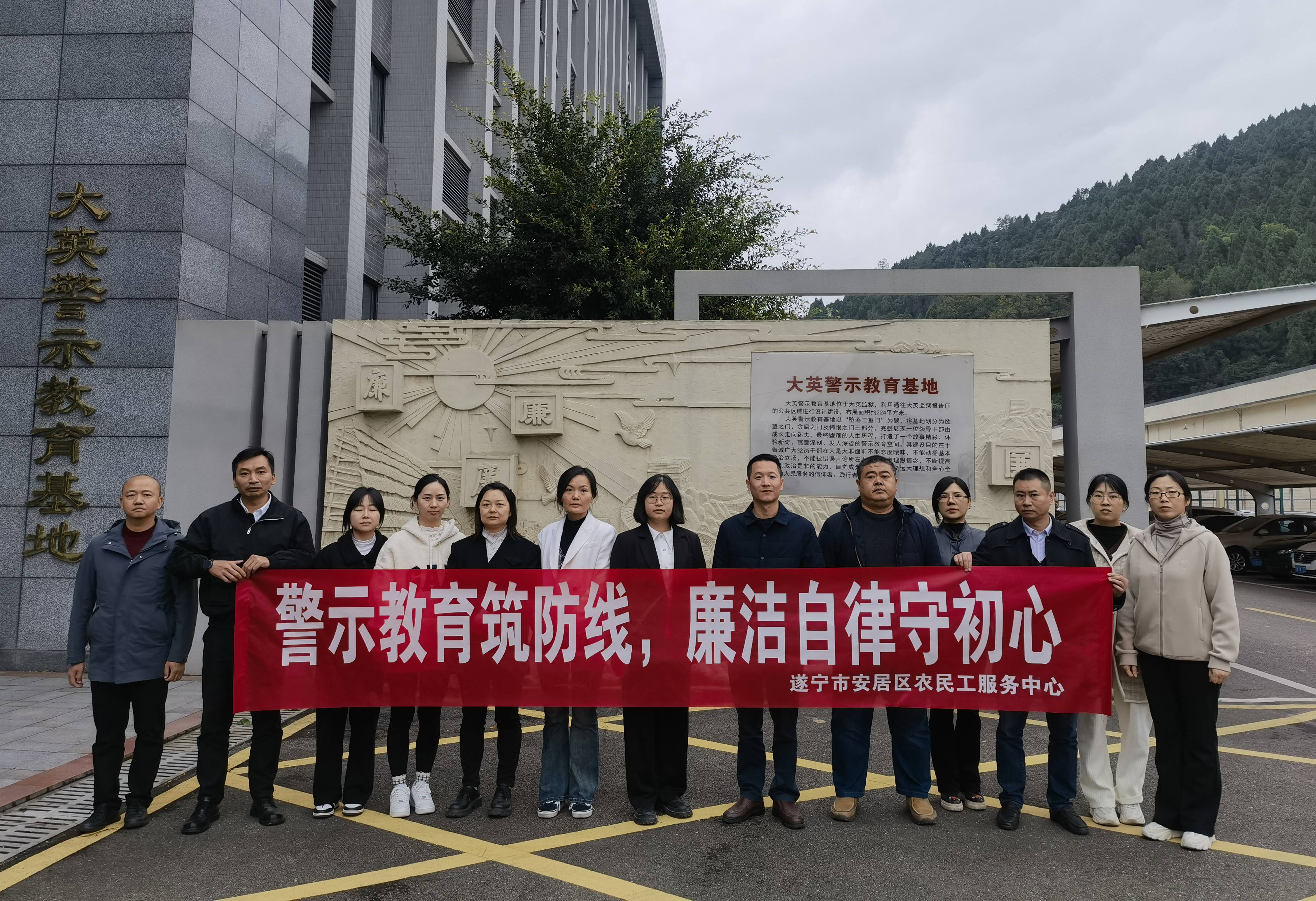 “入党为了什么?”“当官为了什么?”“执政为了什么?”......站在黑白分明的警示教育长廊前,在“啪”的三声巨响中,三道水幕被依次打开,一名曾经的领导干部的起伏人生在“欲望之门”“贪腐之门”“悔恨之门”中上演。11月14日,安居区农民工服务中心干部职工走进大英警示教育基地,开展“警示教育筑防线 廉洁自律守初心”警示教育活动。