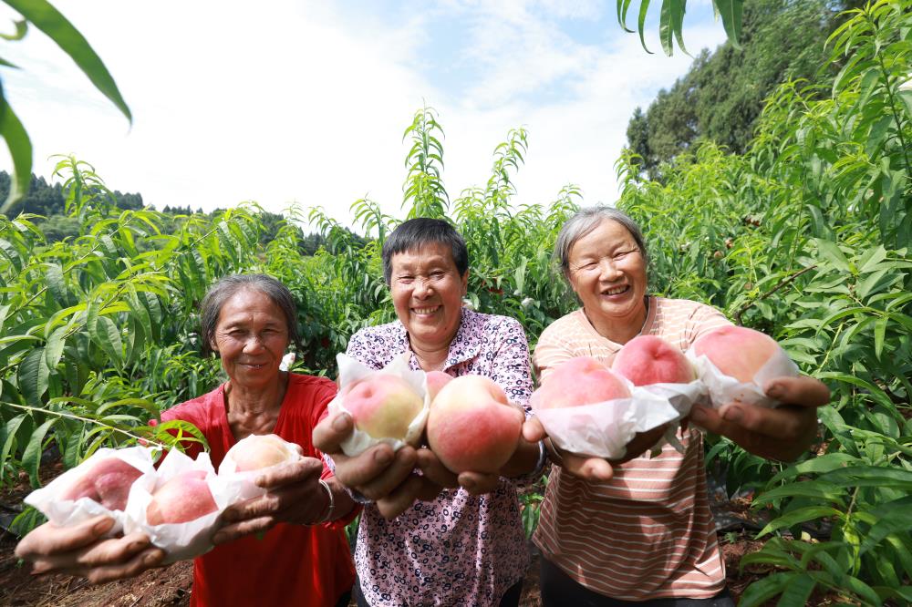 五琅坝村党支部书记向军介绍,该村鲜桃产业始于2016年,已形成核心区500亩、辐射带动全镇6500亩、预计总产量800余万公斤、产值3000万元左右。同时,村里还不断引进新品种,近两年新引进的小白凤和夏之梦,目前还在试点阶段,今年挂果较少,预计明年就能正式推向市场售卖,收购价格可达12-15元一斤。