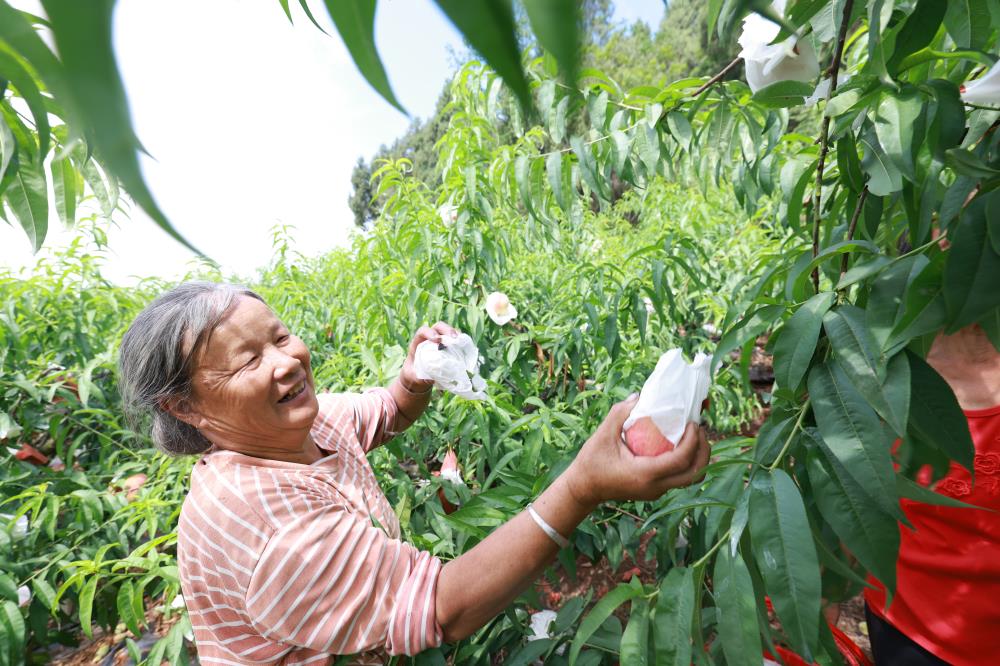 五月,拦江镇五琅坝村放眼望去,漫山遍野的桃树硕果累累,胭脂红、晚湖景等多个优质品种挂满枝头,空气中弥漫着醉人的果香。果农们忙碌的身影与游客欢快的笑声交织在一起,勾勒出一幅产业兴、乡村美、农民富的生动图景。
